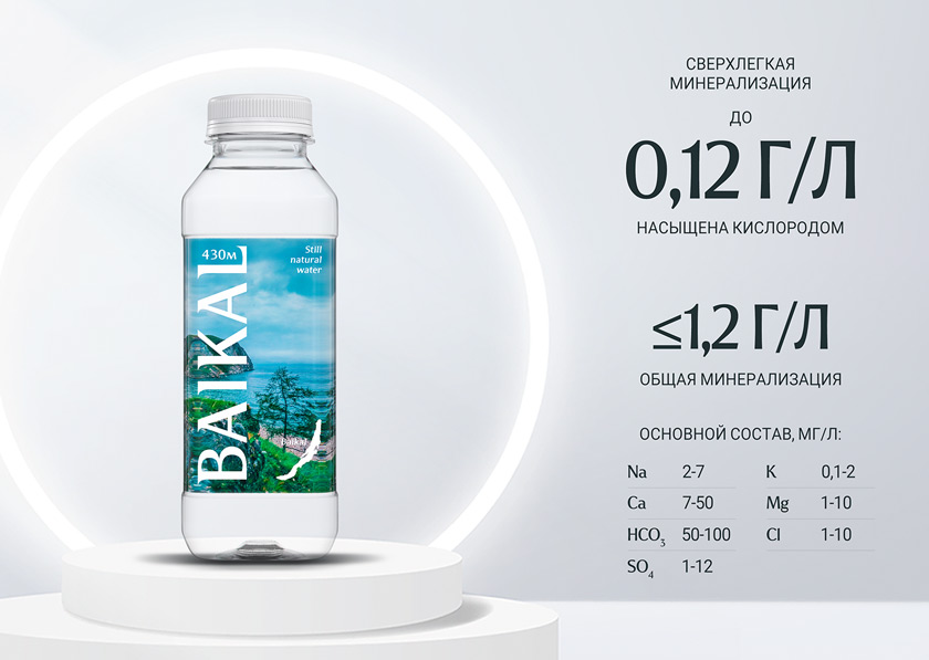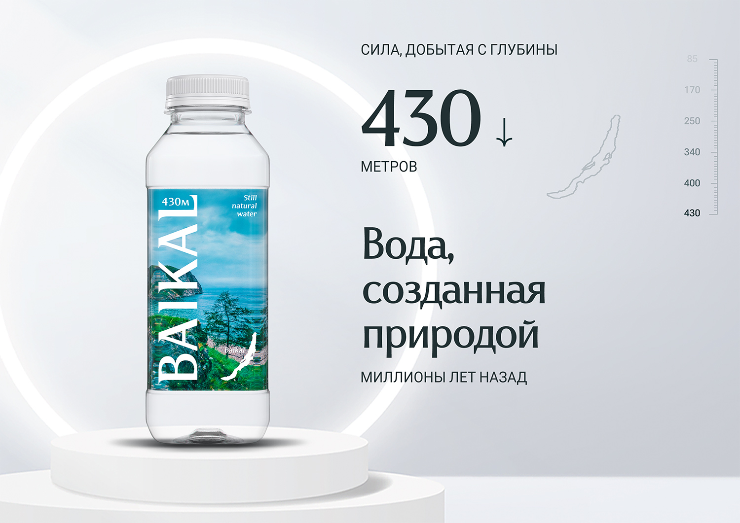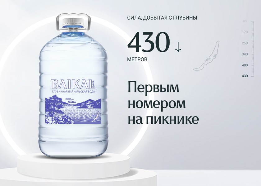 В основу проекта лег единый креативный концепт — подиум, на котором продукт «Байкал» возвышается как главный герой сцены.